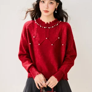 2025 Winter Collection Features A New Red Base Sweater For The Zodiac Year With Beautiful Beaded And Elegant Unique Women’S Top