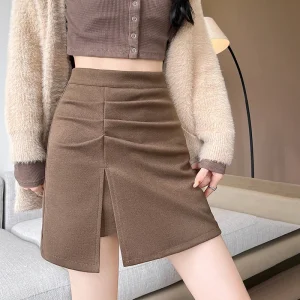 2025 Autumn Side Split Woolen Mini Skirts Women High Waist Slimming Short Skirt Korean Streetwear Sexy Spicy A-Line Skirts Mujer