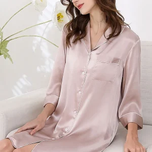 16 momme 100% silk night shirts women Elegant nightdress natural silk sleep dress pajamas for women S5906