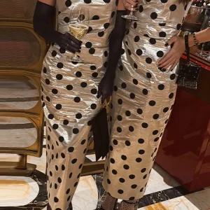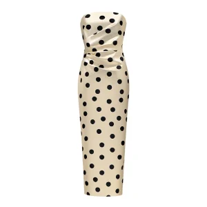 Elegant Women’s Dress Strapless Sleeveless Slim Hip Package Print Polka Dot Female Dresses 2025 Autumn Spring Fashion Lady Robe