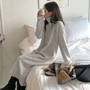 New 2025 Autumn Winter Sweater Dress Women Japanese y2k Turtleneck Long Sleeve Thicken Loose Knitted Long Dresses Hot Sale