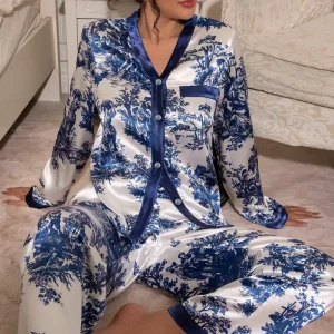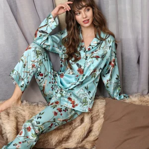 Real Silk Pajama 100% Silk Sleepwear Thin Summer Long-Sleeve Two-Piece SILK Woman’s Sets Female Fashion Printed
